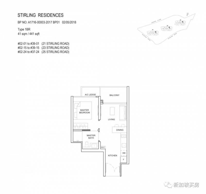 1卧,实用面积41平方米(441平方英尺),价格93万新币起,每平方英尺价格约为2124新币。