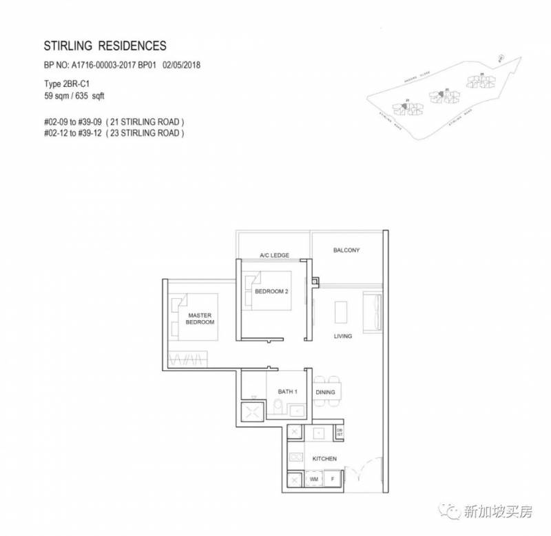 2卧,实用面积59平方米(635平方英尺),价格123万新币起,每平方英尺价格约为1941新币。