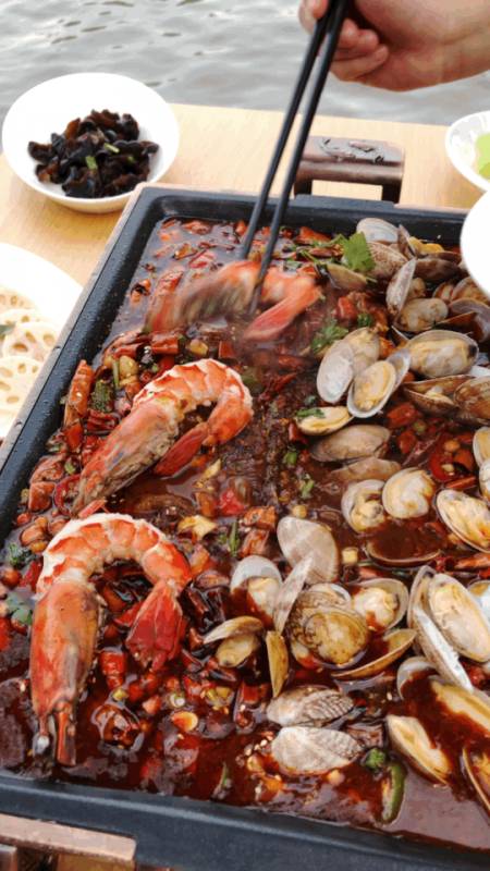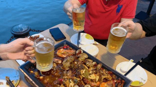 来吃烤鱼也少不点点其它的小炒做做下酒菜!坐拥无敌河景和老友知己吃香喝辣,再举杯饮一口冰冰凉的啤酒,简直就是人间美味!
