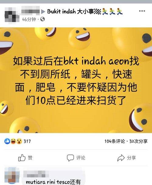 据了解,武吉英达花园和地不佬永旺广场今早都突现大批购物人潮,所幸广场存货足够,在货物架被扫空后,广场人员也不断补货,不至于出现严重的架空情况。