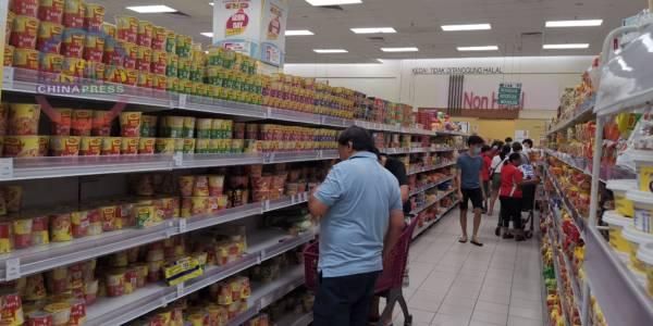 新加坡男子花600令吉购买许多干粮和日用品,如饼干、杯面,并称这是家每月正常分量,并非囤货。