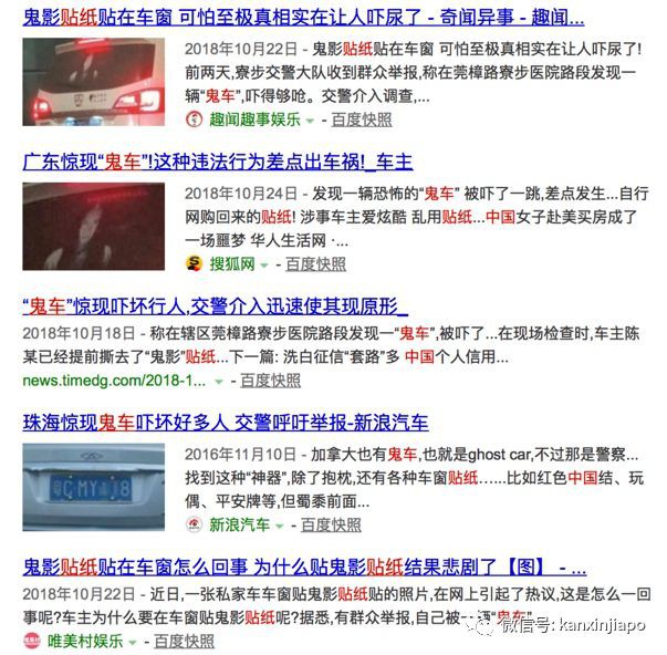 2017年,韩国釜山一名32岁金姓男子,在轿车的后车窗使用了女鬼贴纸,吓坏尾随的司机,金男日前被当地法院罚款10万韩元(约116新币)。