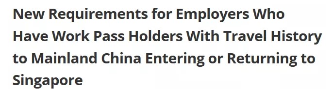 2月7日晚上,新加坡人力部(MOM)发布公告:所有在过去14天内到过中国大陆,并打算在2月8日晚上11时59分过后返回新加坡的工作证件持有者,