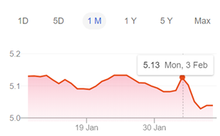要知道,去年12月12日,新币对人民币汇率最高时达5.1879,今年1月1日也是在5.1699-5.1774之间。