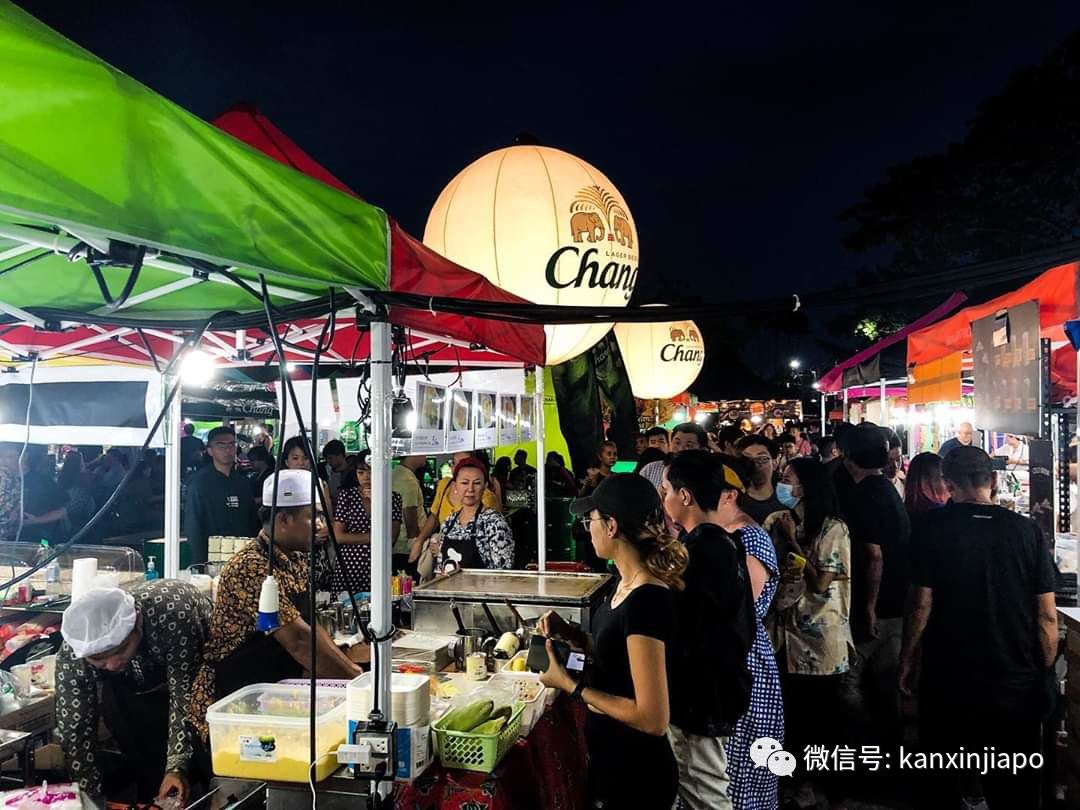200多个美食摊位营业,新加坡4000多人量体温后逛吃泰式夜宵