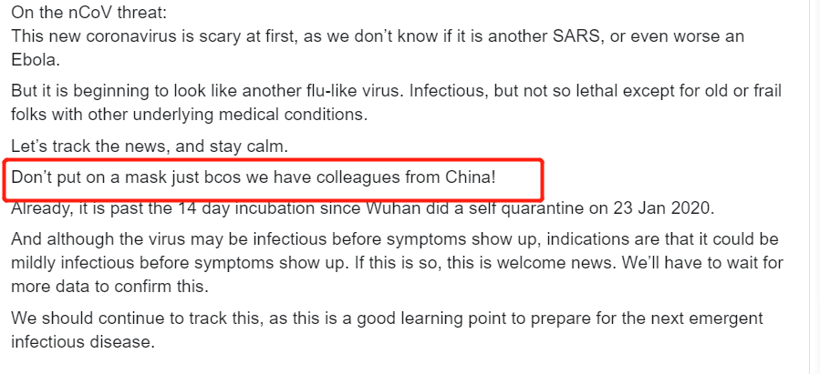 新加坡总理夫人何晶:不要因为有中国同事,就戴口罩