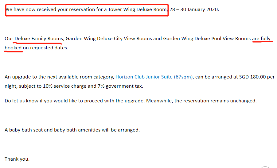 在我各种电话、旺旺骚扰下,怎么说我也是F3高级会员好吧!终于!收到了确认函带确认号!可是酒店回复,想付费升级到豪华家庭房,已经没了,订完了。OMG!认命了!