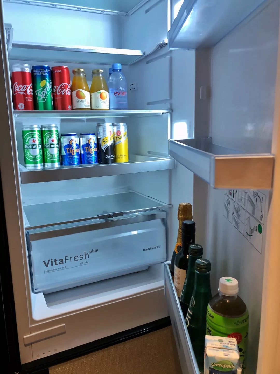 家庭房的冰箱不是小冰箱,全部是家用冰箱,有速冻和冷藏两层的,还放了一瓶牛奶(好像是免费,mini吧没有写价格)