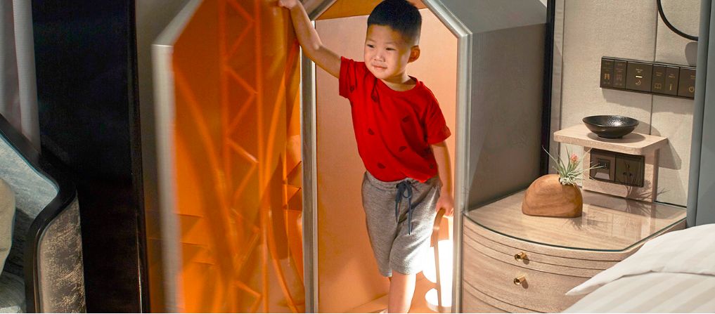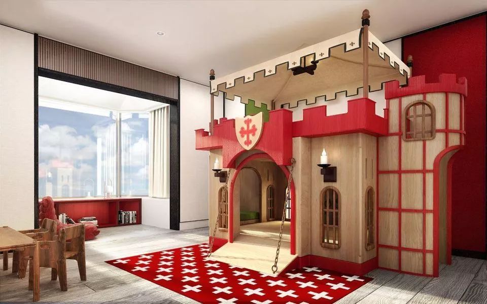 最特别的部分是上图飘窗处的空间,酒店经过特别设计,把飘窗做成了小孩的床铺,也可以是他们的游乐空间。