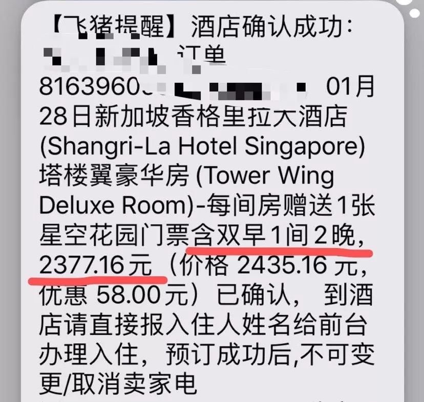 预定:飞猪国际酒店预订,价格2300两晚含双早,入住时加钱每晚$150新币,升级到family房