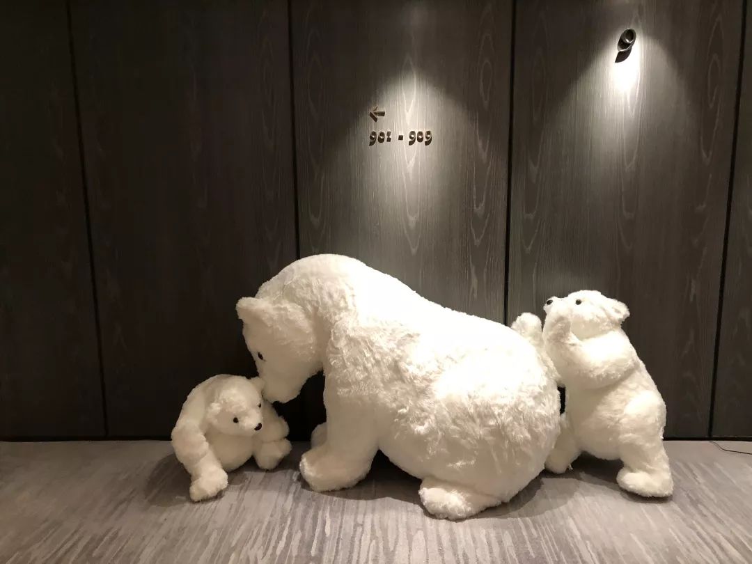 家庭楼层的设计也是讨小朋友喜欢的,一出电梯就是北极熊一家迎宾。主题套房的外面还设有火箭邮箱。楼层有多个空气净化器保证空气的消毒清新。由于是晚上入住,所以拍的照片不太够光线,大家凑合看吧。