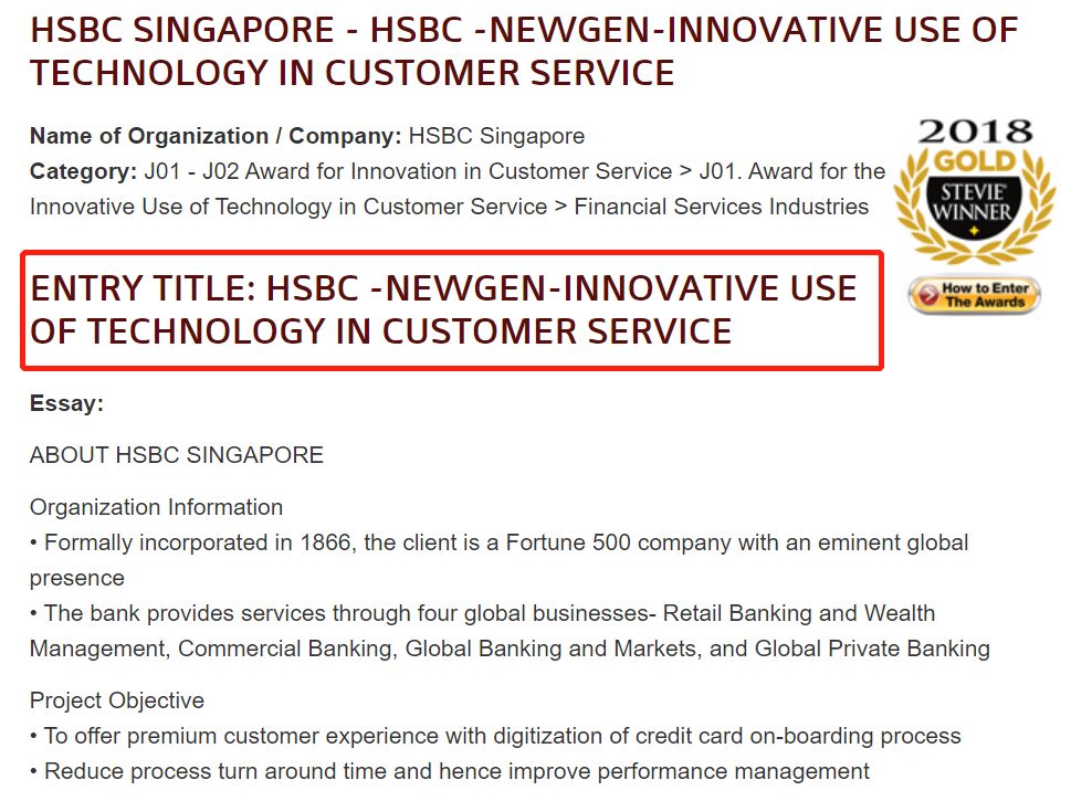 HSBC新加坡分行目前表示希望通过优质的数字服务和完善的客户体验来弥合其客户的数字鸿沟,希望通过用数字工作流程替代其手动和文档密集型工作流程,从而将敏捷性和效率引入其运营中,为此选择了 Newgen 的企业移动框架,该框架使汇丰银行的纸质信用卡注册流程实现了数字化。