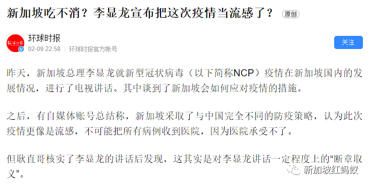 但是,一些批评却让人感觉居心不良,例如针对李总理谈话的批评,结论竟然是新加坡政府已经放弃了防疫,要新加坡人自求多福,还说新加坡为了确保社会生活正常,对疫情的威胁掉以轻心,还照常举办万人宴,可能会变成了另一个武汉。