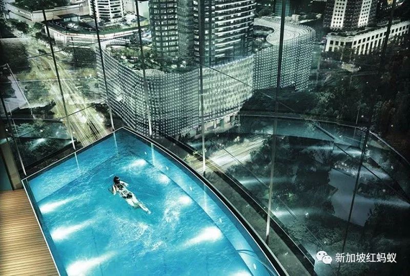 而顶层豪宅坐落在最高楼,共有三层楼,顶楼是一个25米长的露天游泳池。让屋主在泳池内戏水的同时,还能欣赏窗外的美景。
