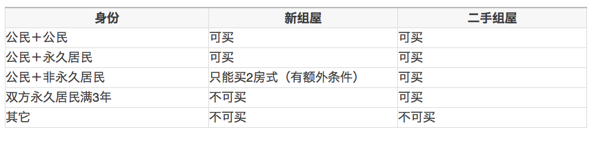 2. 购房者必须拥有新加坡身份(citizen或PR);