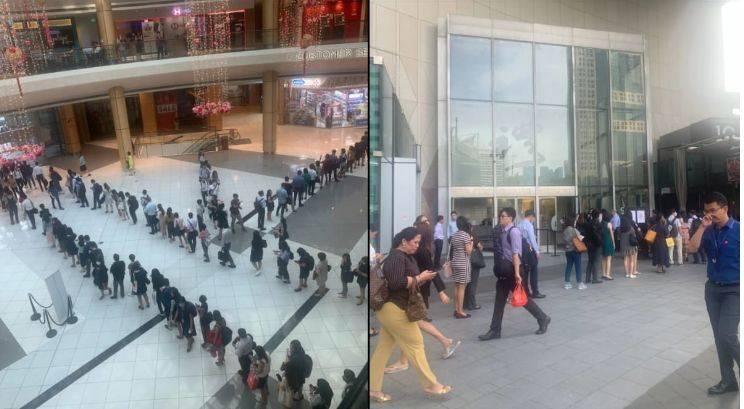 有网友PO出新达大厦的工作人士进入公司前, 排起了长长的队伍。按照规定,凡是进入大厦人员,必须检测体温。