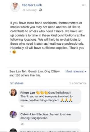 不到两天的时间,物资领取站就变成了消毒液温度计和口罩等防疫用品的捐赠站。民众们纷纷伸出援手,把家中的物资捐给有需要的人。