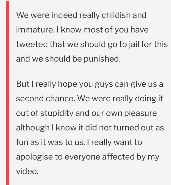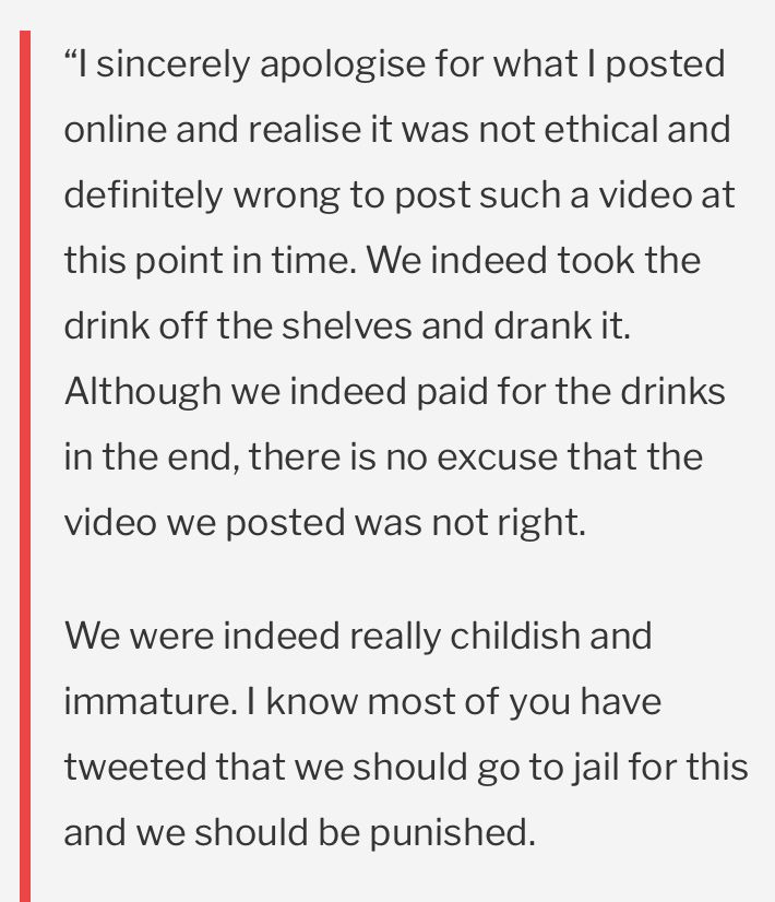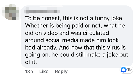 “老实说,这一点也不搞笑。不管他们给这个饮料买单了没有,他们做出这种事,拍下来传到网上,本身就是一种很糟糕的行为。现在病毒到处传播,他居然还能拿这个开玩笑。”