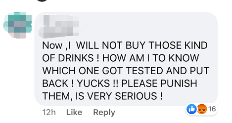 “现在,我不会再买这些包装水了!我怎么知道哪些水被喝过了又放回去?恶心!应该惩罚他们,这是很严肃的一件事!”