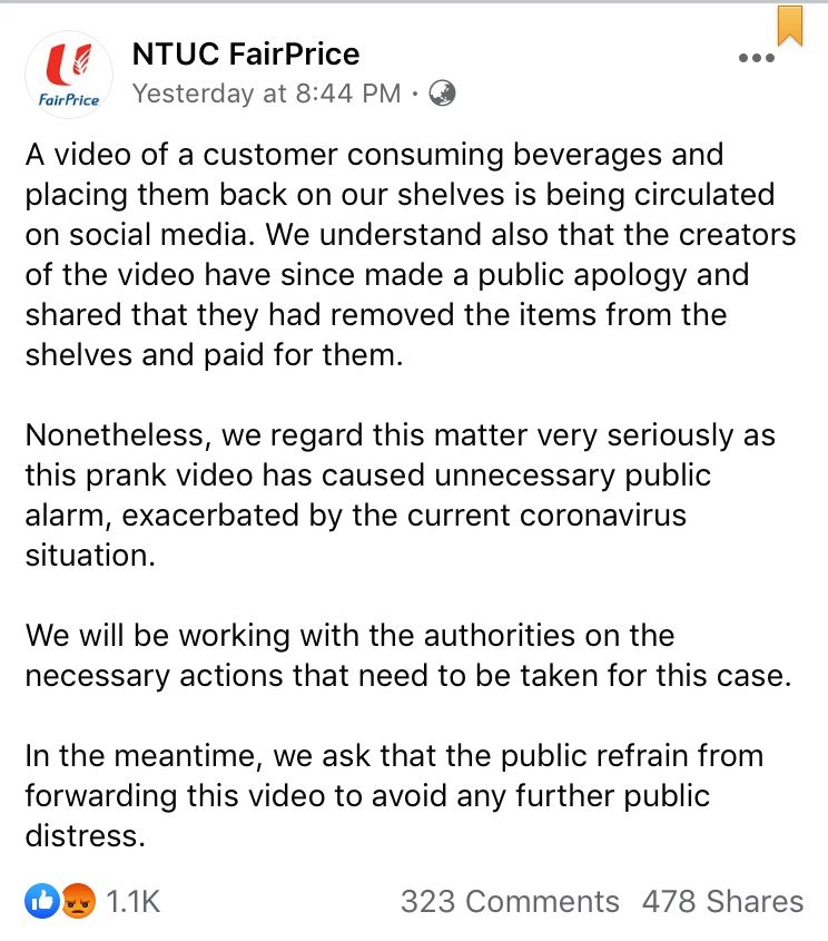 视频疯传!饮料喝一口再放回超市货架,新加坡警方出手了