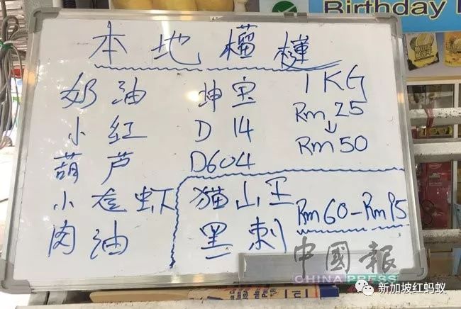 黑刺卖得更贵,每两公斤要卖660元人民币(约130元新元),这还是打折后的价格呢。每公斤约65新元的榴梿,蚁粉们你舍得买吗?