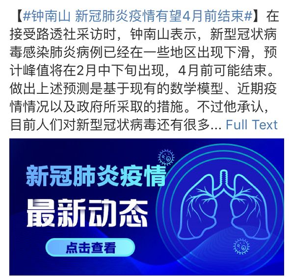 疫情在4月前有望结束