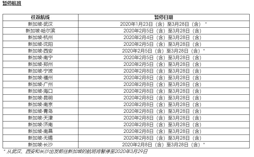 目前,在2020年2月至3月28日期间,新航依然会继续北京、上海每天一班、广州每周一、周三、周五各一班,以及重庆每周一往返新加坡的少量航班服务,以便为有切实出行需求的旅客提供服务。