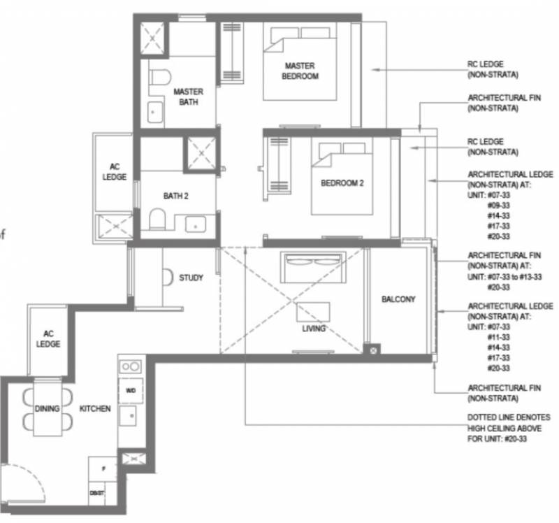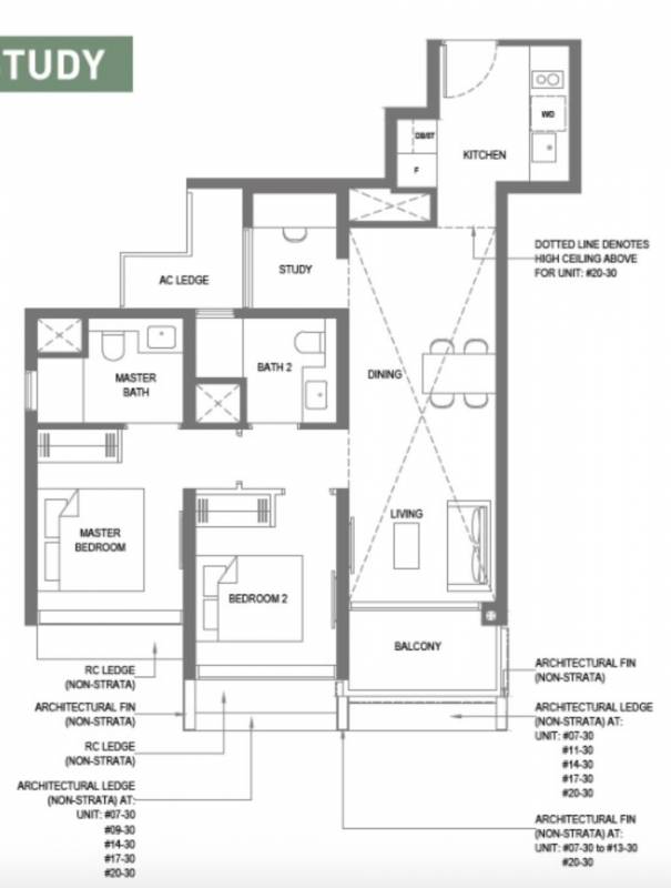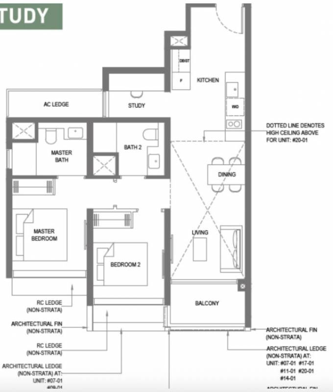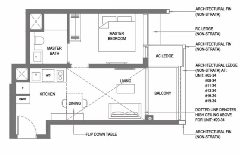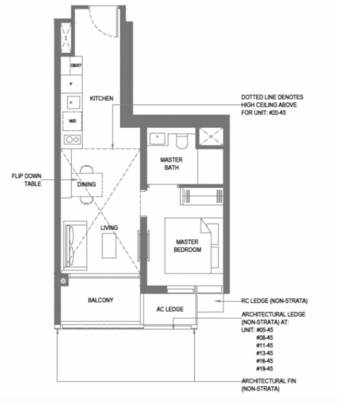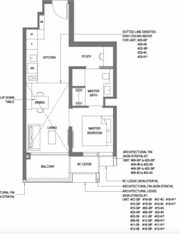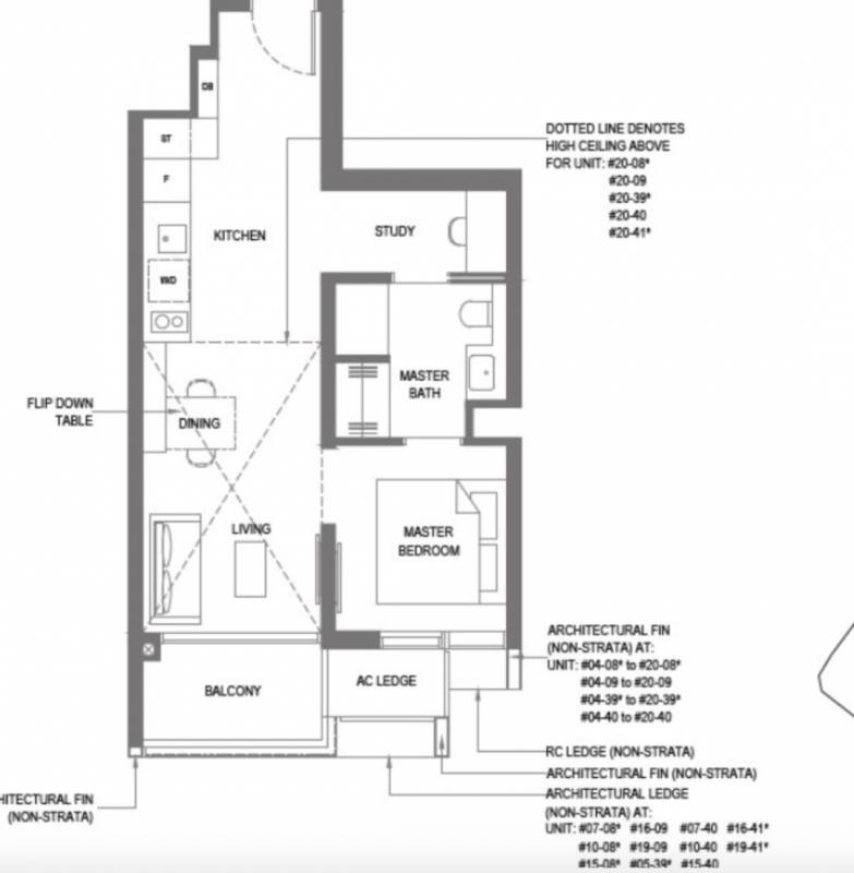 AS1-R户型1室+书房 657平方英尺/61平方米