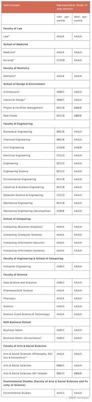 拿到成绩就要考虑申请大学了,以下是去年各个大学的A水准录取分数线,供大家参考~新加坡国立大学(NUS)录取分数: