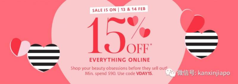 丝芙兰 Sephora消费满90新币使用促销代码【VDAY15】可享受所有产品85折~