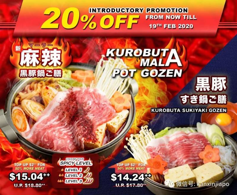 时间:2月9日至15日(每天前50位顾客)地址:Tampines 1 #02-K3 (11am);Cineleisure Level 2;Jewel #B2-273TAMPOPO独家黑豚麻辣锅和黑豚寿喜烧目前提供20%折扣!