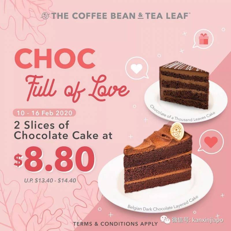 时间:2月12日至18日地址:全岛门店(不包括樟宜机场T3)Coffee Bean原价14.40新币的2种巧克力蛋糕现在只要8.80新币就能享受两块哦~