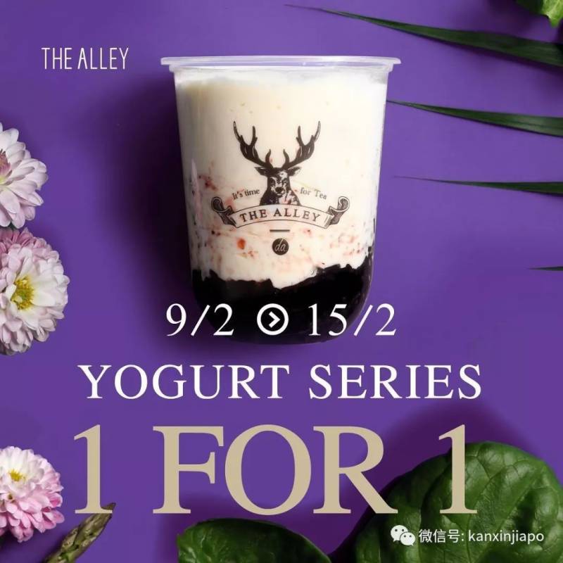 时间:2月10日至16日地址:全岛门店(不包括MBS)The Alley在Instagram分享任何Alley's酸奶系列的贴文,到店出示兑换即可享受酸奶买1送1。
