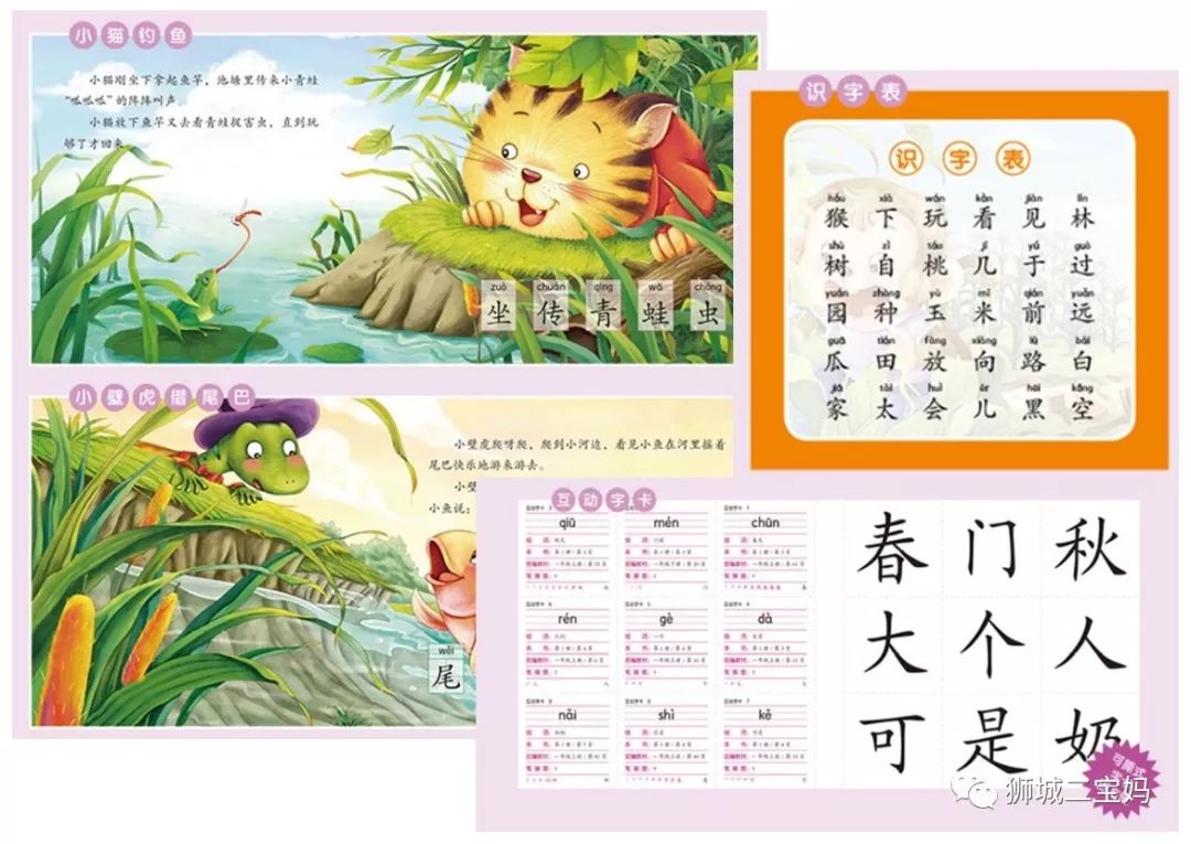 宝妈点评:1). 插图有趣,图和字的比例适合幼儿;2). 每课只引进一个生字,已学汉字密集反复巩固,帮孩子建立信心。