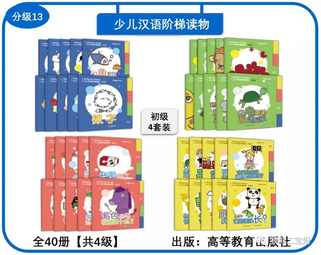 高教社少儿汉语书屋出品,即Diving into Chinese。全套4级,每级10册。针对孩子感兴趣的话题,利用有趣的情节和画面,帮孩子循序渐进地学习核心字词和句型。