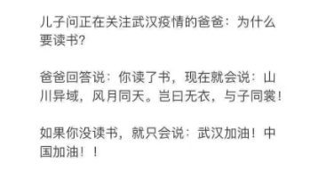 日本民众对中国的友爱、温暖、亲密和支持,可以用中国语言有着那么多种的表达,而我们,似乎就是那句“武汉加油!中国加油!新加坡加油!”,于是,网上就有了这个段子: