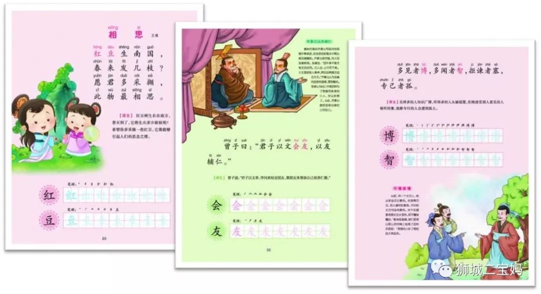 这套在海外妈妈圈备受推崇,有两大亮点:1). 难度合理:起步简单,生字扩充缓慢,故事前后连贯;2). 设计实用:附有拼音,笔顺,象形图解,多音多义字扩展等。