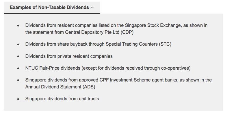 来自新加坡证券交易所上市公司的股息,如Central Depository Pte Ltd(CDP)的声明所示