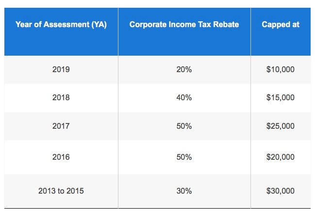 这比先前公布的20%应付税款的回扣(上限为10,000新币)有所增加。此外,企业所得税CIT回扣将按照应付公司税的20%延长至2019年财务年度,上限为10,000新币。