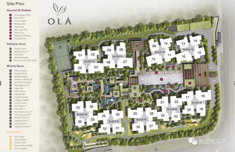 OLÁ是由本地发展商商毅雅地产Evia Real Estate和马来西亚Gamuda Land联合投资开发。该项目位于新加坡D19盛港区,属于99年产权,总占地面积为17,137平方米(184,465平方英尺)。