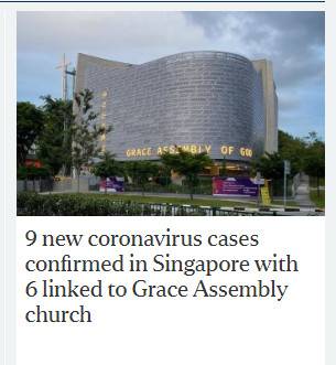 刚刚,新加坡新增9例 新冠病毒病例 其中,有6例和神召会恩典堂 这个感染群有关 再一次创下了 单日新增病患的最高纪录! 全岛确诊总计67起!