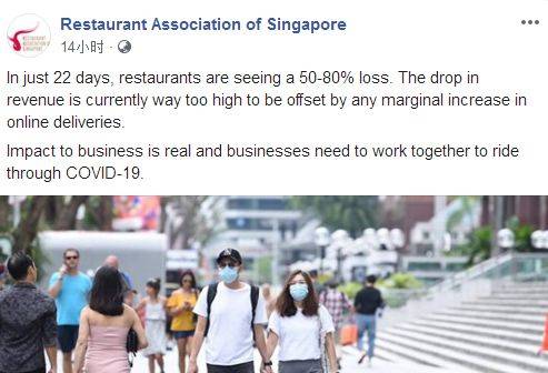 协会称,工资和租金占所有餐饮运营成本的一半以上,自疫情发生以来,已有20多万名雇员受到影响。协会如今已向凯德集团、AsiaMalls等商场管理公司等超过24个企业或房东发出邮件,希望他们接下来3至6个月的困难期,给予餐饮租户50%的租金折扣。