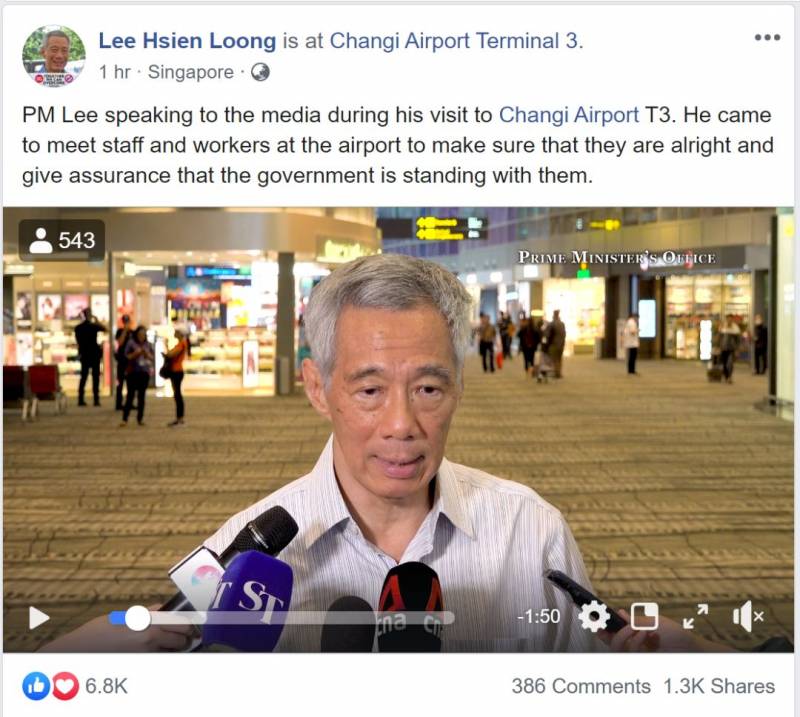 “今天我跟很多人聊天了,计程车司机,ICA人员,地勤人员,我想知道他们的情况。樟宜机场的顺利运转离不开他们。”