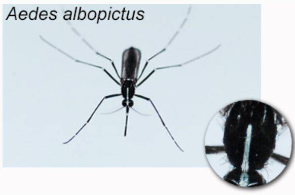 白纹伊蚊 - 可以传播骨痛热,但效率不如埃及伊蚊。