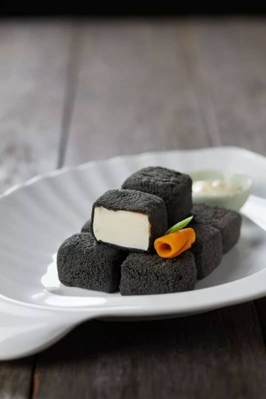 裹上竹炭粉的豆腐,经油炸后捞起,就像一块块“黑色饼干”,吃起来外皮酥脆,内里豆腐丝滑爽口,入口即化。
