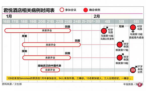 参加1月会议的109名员工中,仅有15人为新加坡当地人,其余94人分别来自中国、马来西亚、韩国、美国、日本以及欧洲国家。这94人在会议结束后均已离开新加坡。
