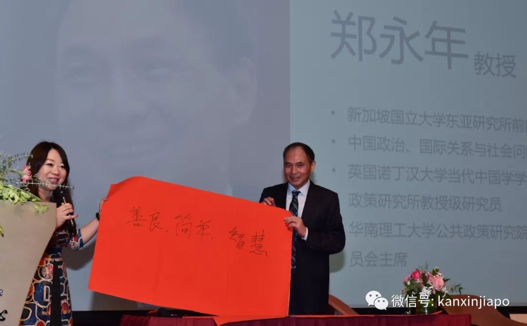 ▲杨教授深入细腻动情的演讲 随后,国际著名学者,新加坡国立大学东亚研究所前所长郑永年教授开讲《中国2035》。郑教授对中国的政治、经济、社会等方面有着深刻的洞察力与预见性,他带领着现场观众们以史为鉴,纵观上下五千年,展望未来16年。就是这样一位思想深邃的学者,依然简朴、谦卑,他在签名台留下自己的人生格言“善良、简单、智慧”,让全场为之动容。