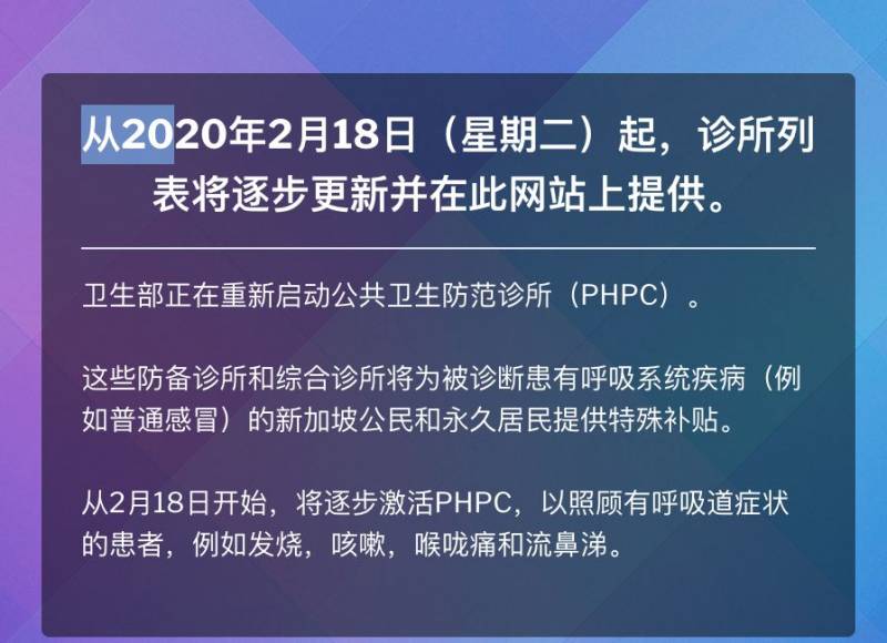 新加坡重启PHPC计划就诊呼吸道疾病只需10元新币