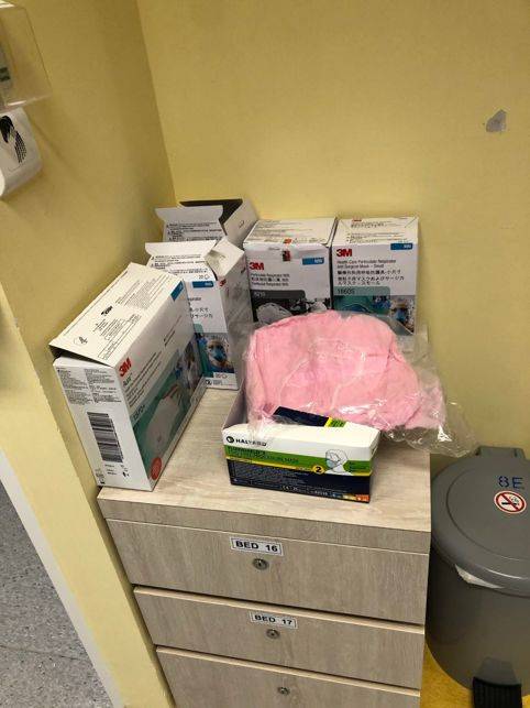拍到门口护士站存放的3M口罩,感觉像发现了“金山”