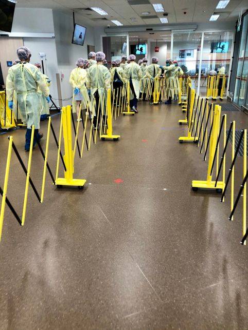 走到招呼我的护士面前测了耳温,又绕了一圈隔离带,才到登记处。登记处有三个柜台,从这里就开始询问旅行记录并测量血压和指氧。他们有一张带颜色的中国疫情地图,让我确定去过哪个省份,有没有接触过病患或去过中国的医院等等等问题,之后这些问题还会被不同的医生多次询问确认。